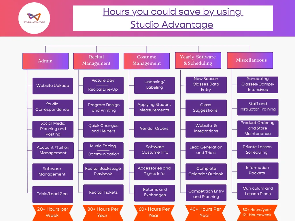By utilizing an executive studio assistant for 8 hours per week plus project management, this could save you 500 hours during your season.